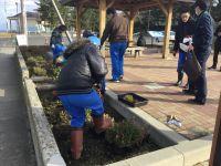 今年度から管理させていただいている八戸市の花(鮫地区)の処理、歩道の雑草取り、ゴミ収集所・バス停・待合椅子・掲示板拭き等の作業を行いました。